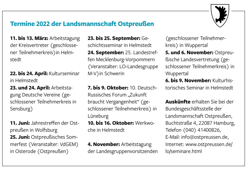 Ostpreußen“. Anmeldung unter Telefon (0521) 82026 oder (05202) 5584.